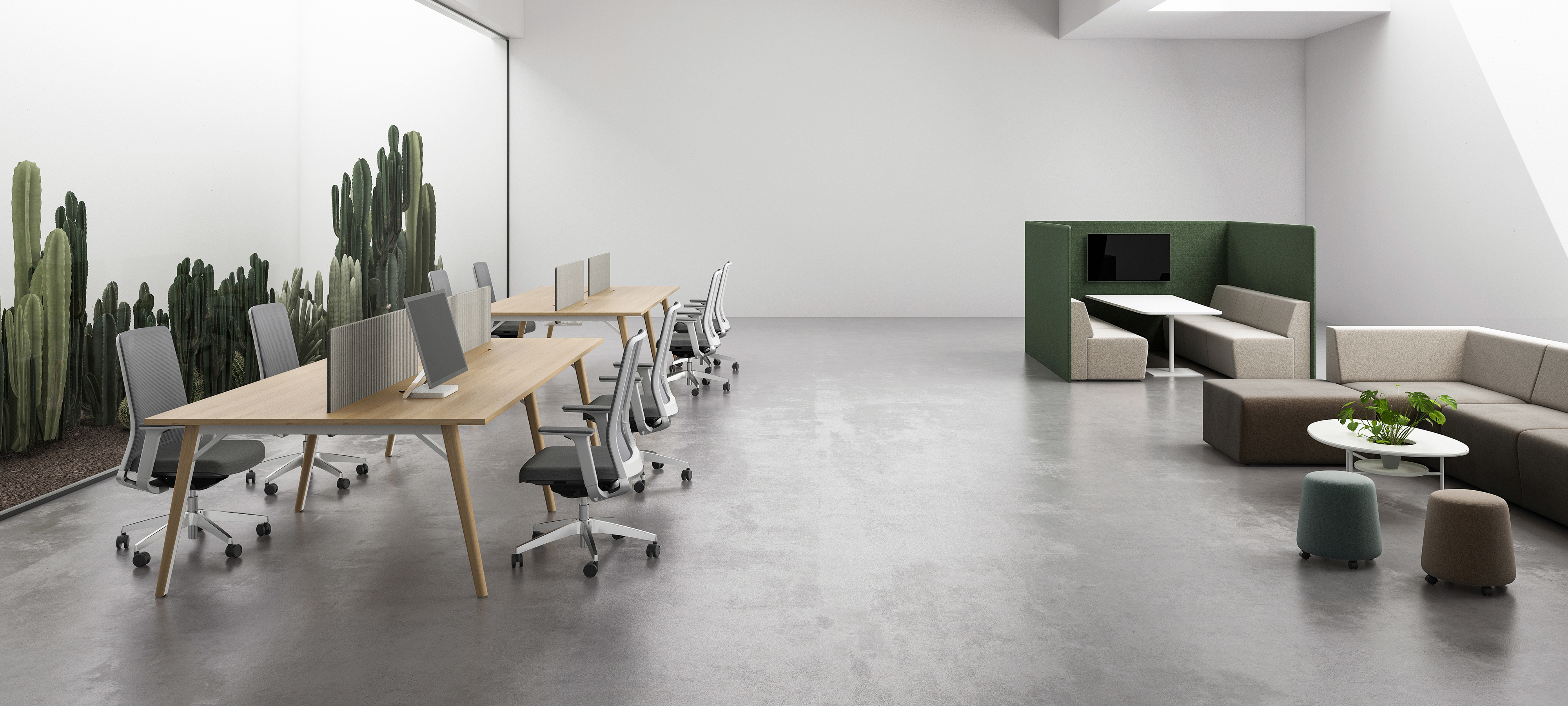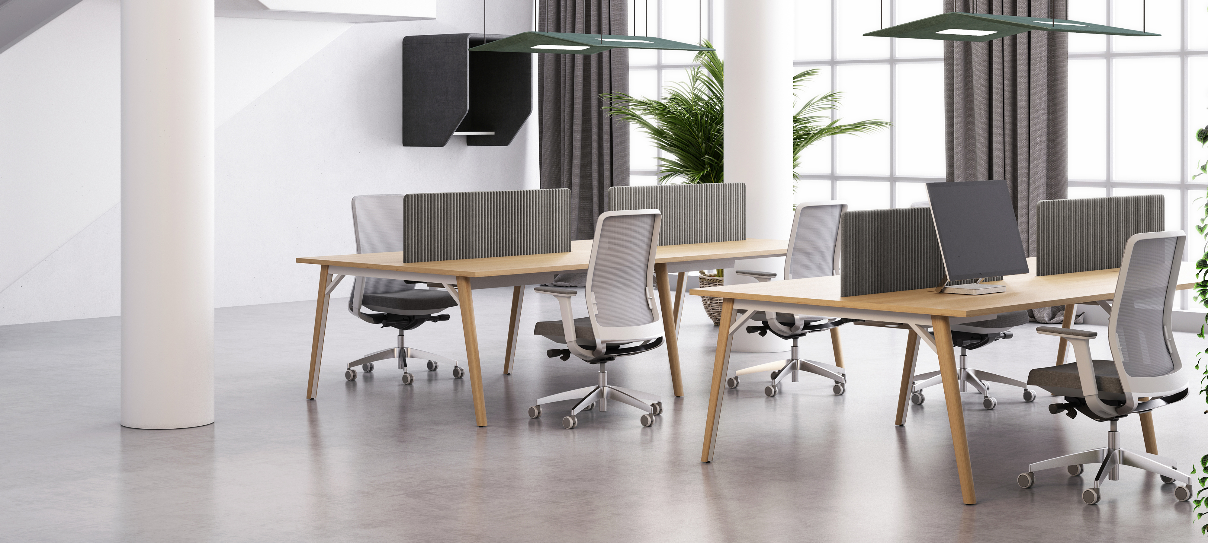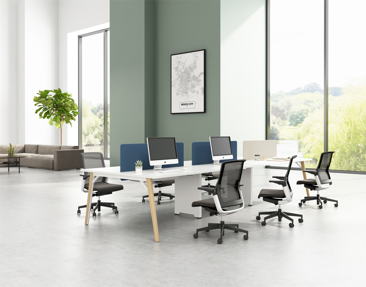 整个系列的细节,丰富且人性化:治愈系的波浪纹外观的屏风和柜门板、简约隐形的黑色磨砂喷涂的拉手、视觉完全统一的桌面走线系统,符合不同空间规划的色彩搭配等设计,让NEXT系列天生自带现代感及亲和力。