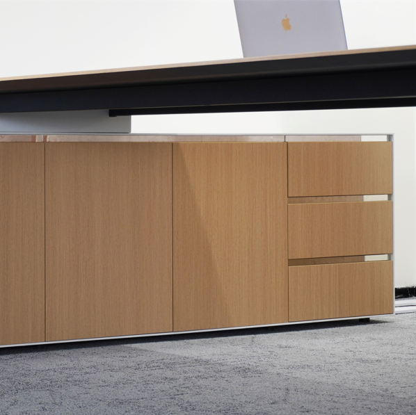 PELE系列拥有仅5mm超薄的斜切边,且侧柜和背柜同工艺处理,整体气质干净利落。