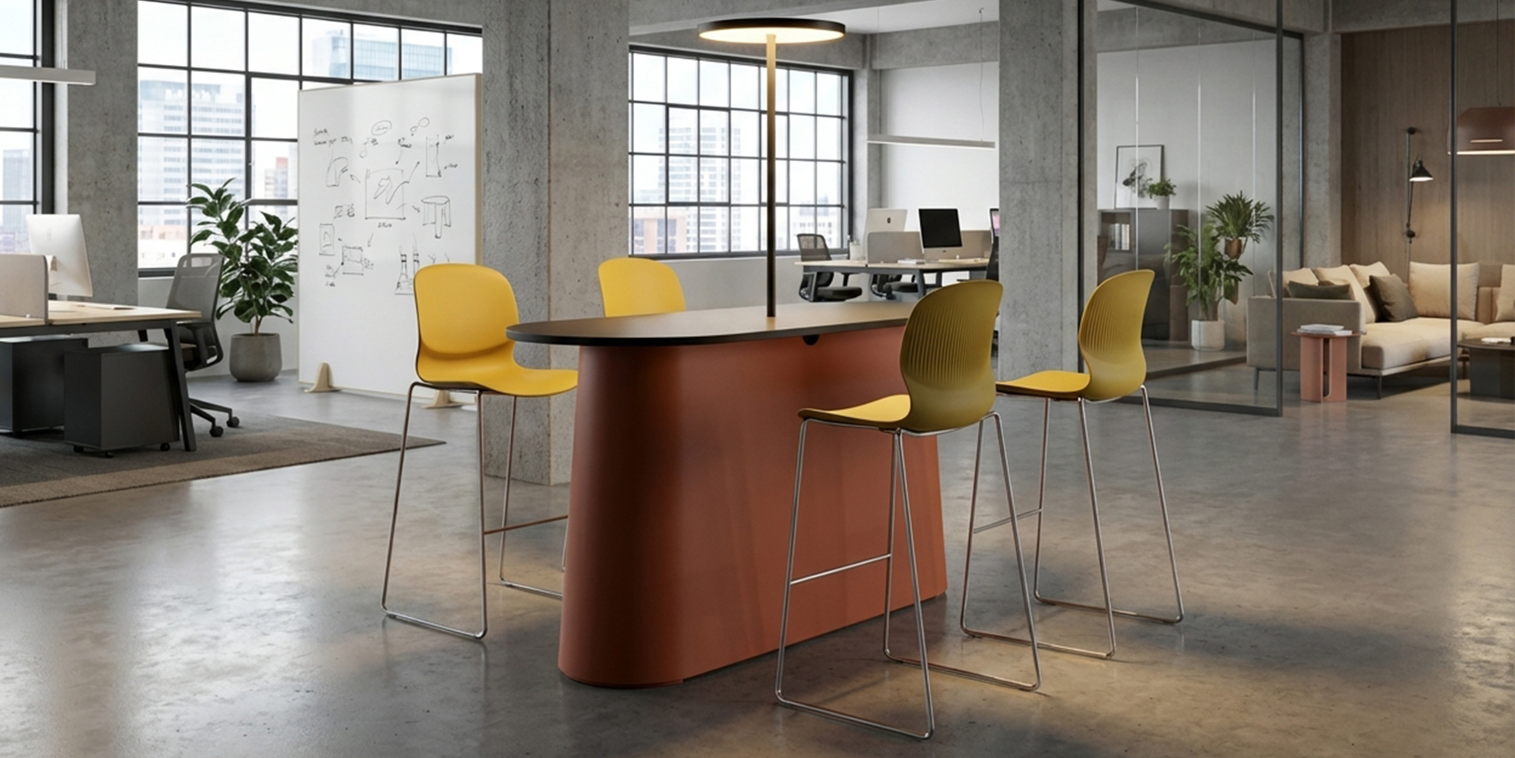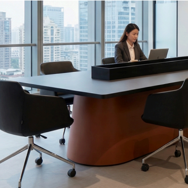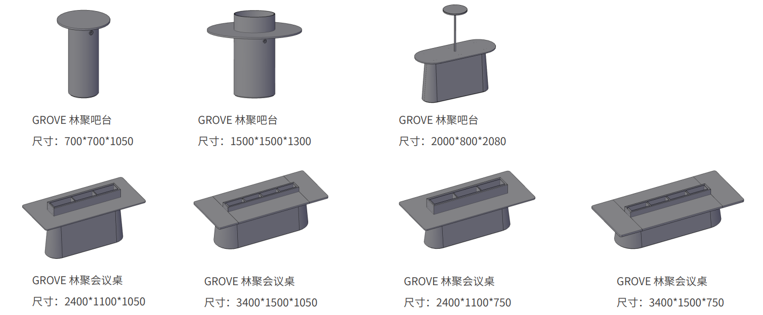 - GROVE 的设计,并不⽌于⼀张桌⼦,⽽是在空间中构建停留与沟通⾃然发⽣的节点。 圆弧基座不仅是造型表达,更在空间中形成稳 定⽽柔和的视觉重⼼,让⼈更愿意靠近、停留 与交流。