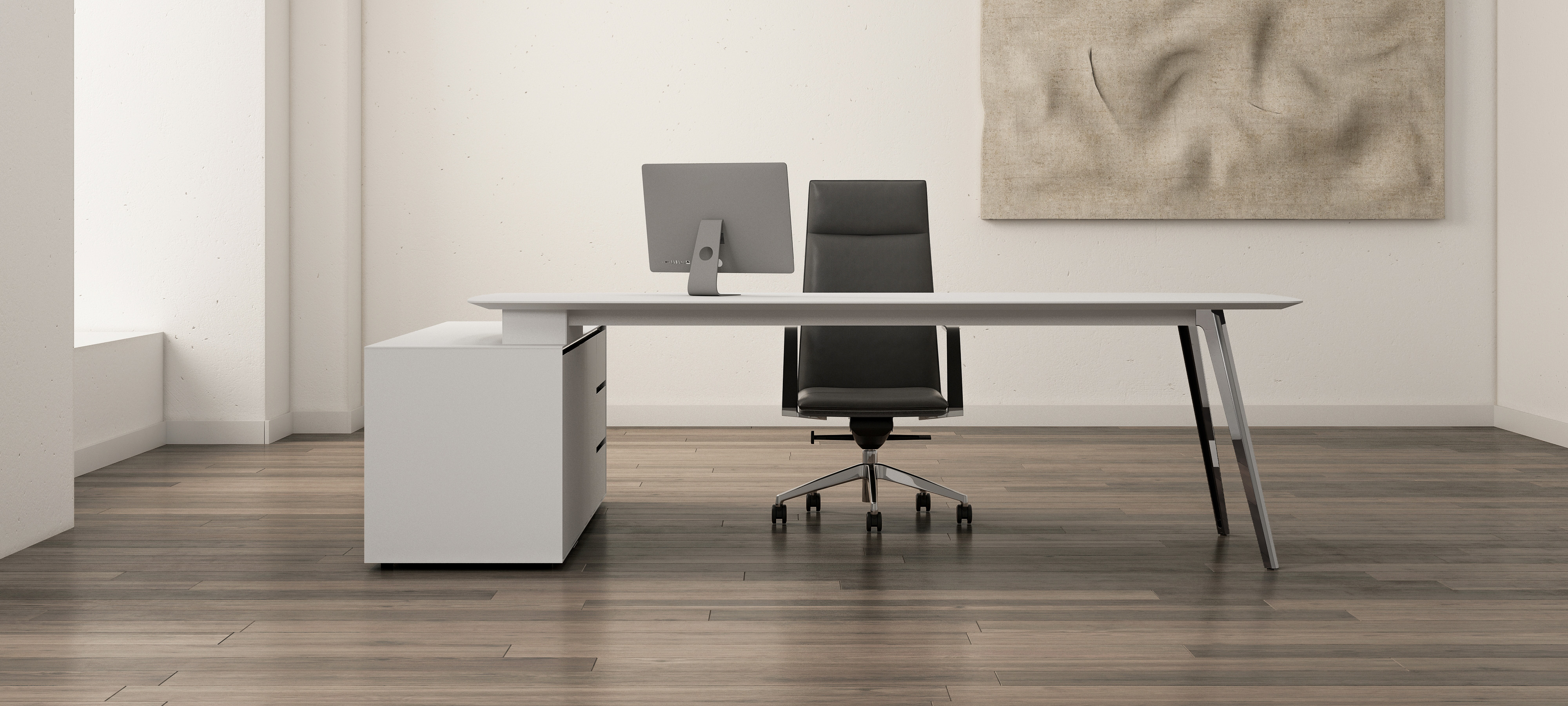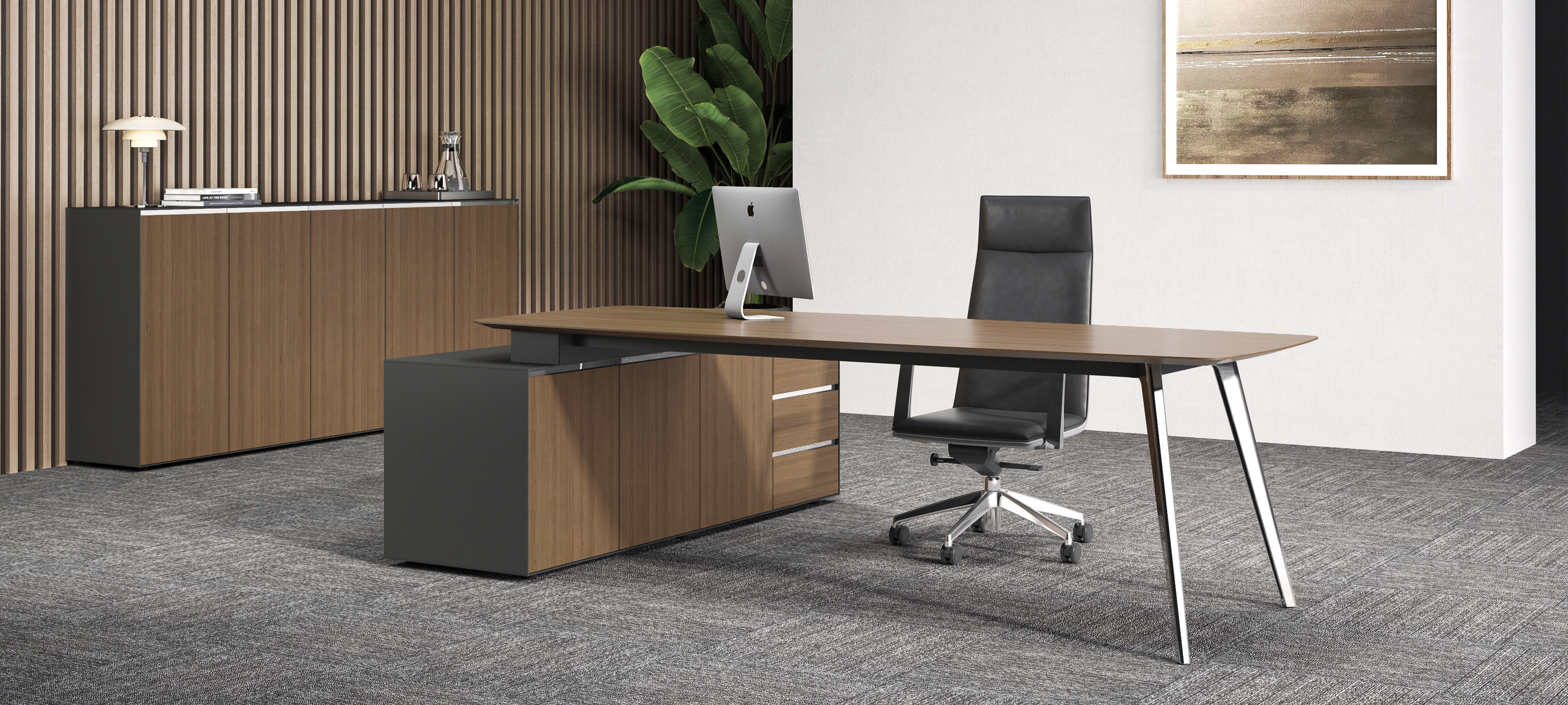 PELE系列细节丰富且人性化:隐藏式的侧面多功能走线系统,让桌面收纳显得干净又整洁;