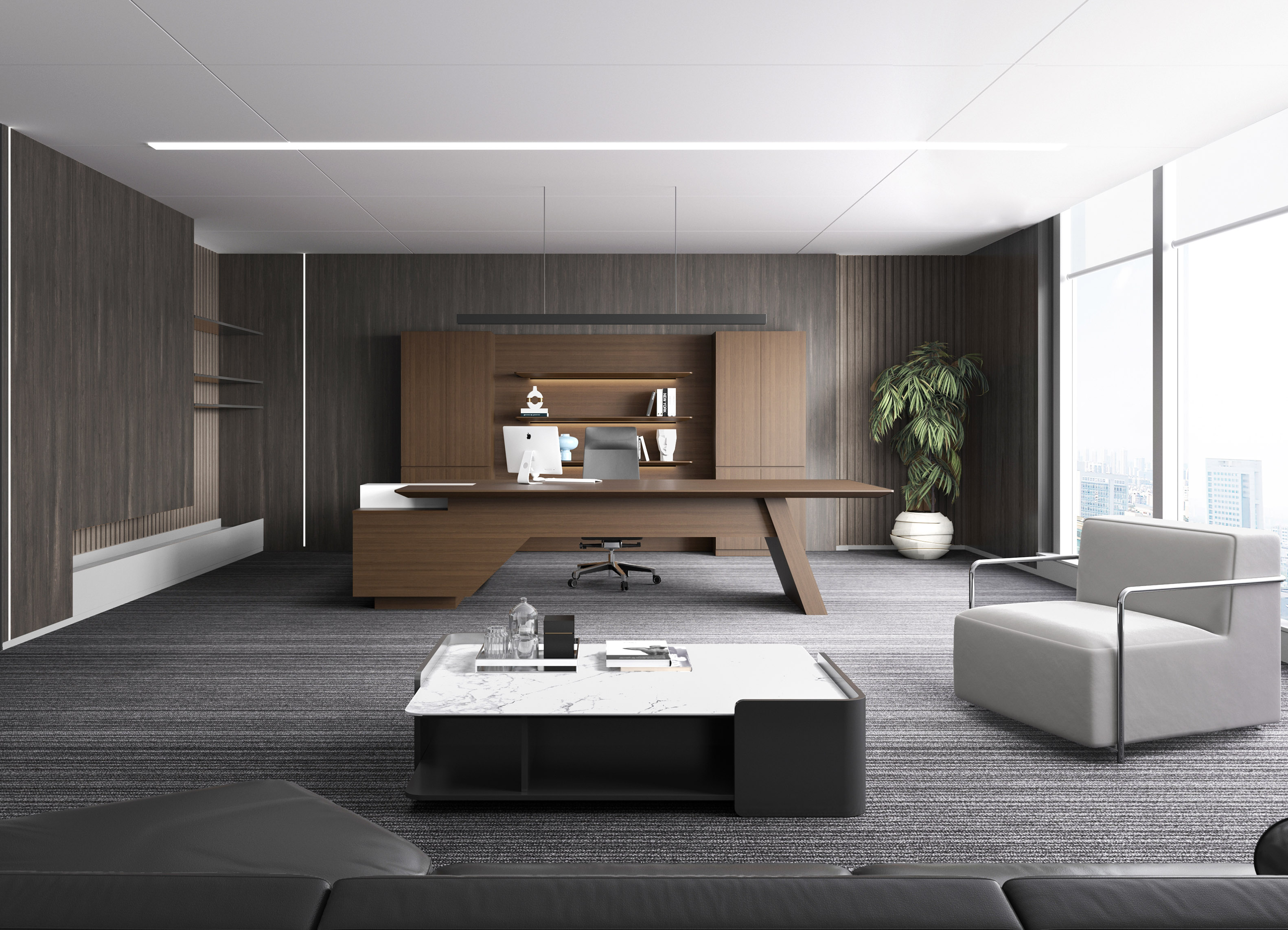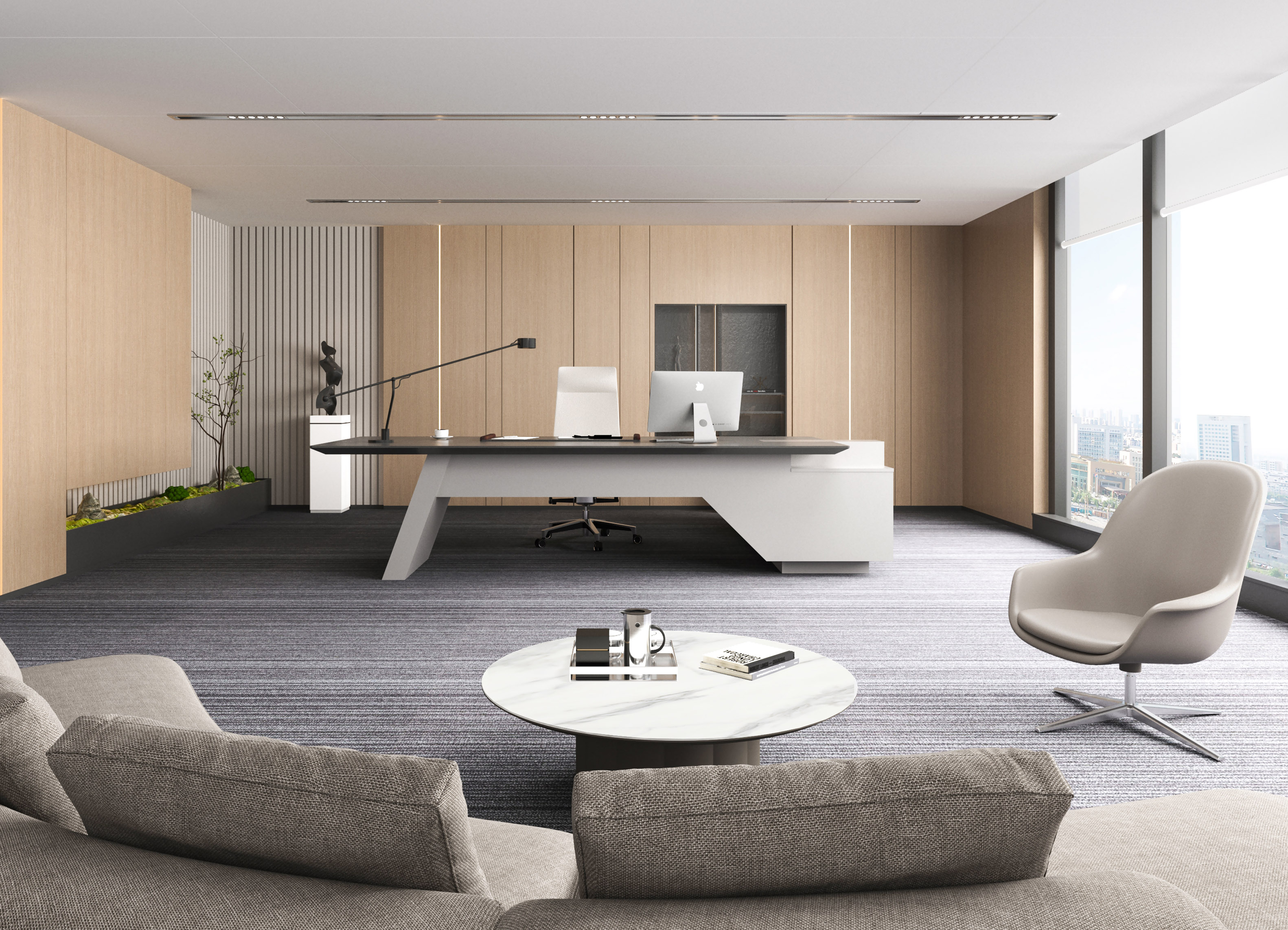 弧线柔化了空间的锋芒,木与皮的交织赋予温度与质感。在理性的秩序之上,彰显的是决策者从容而坚定的气度。