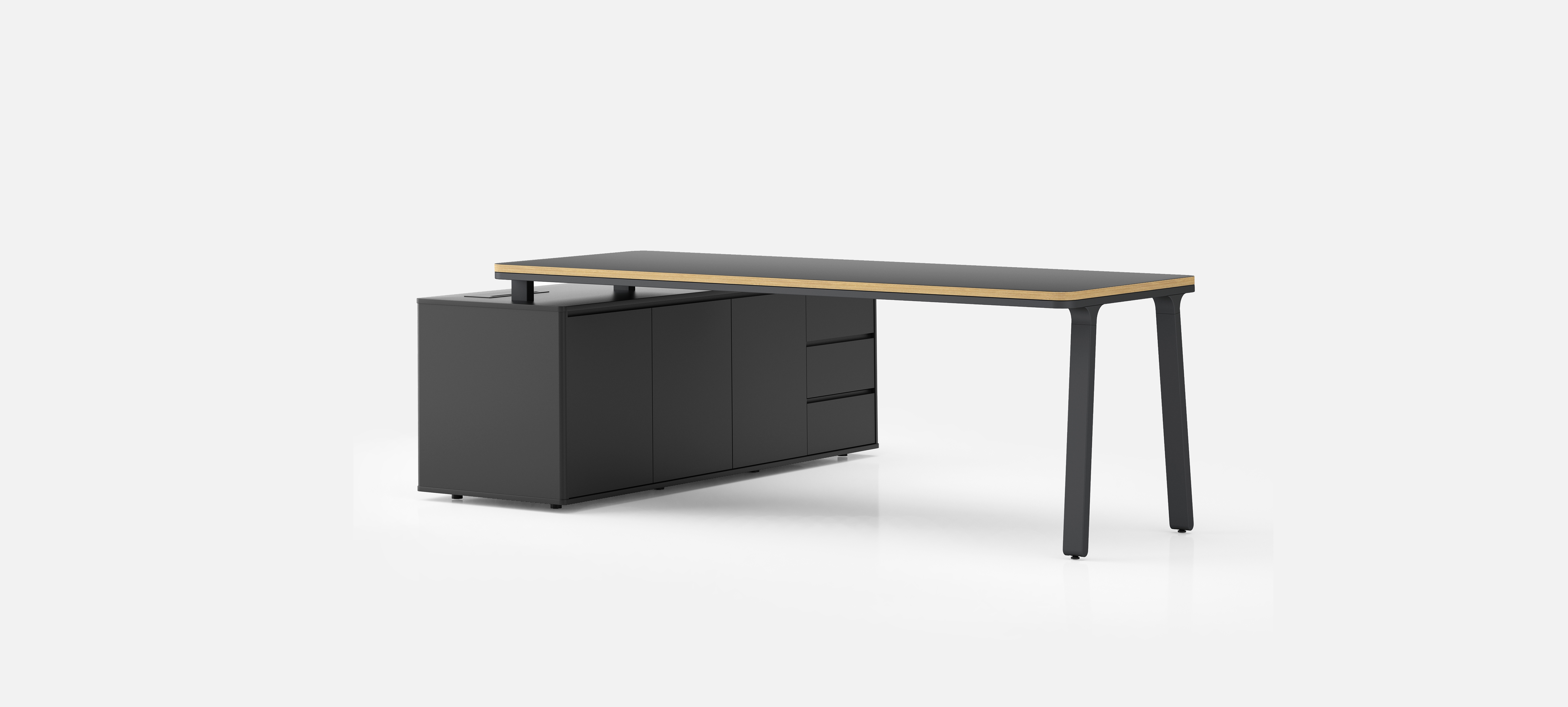 此系列产品覆盖:主管桌、员工位、吧台,可实现行政管理者办公需求的应用。