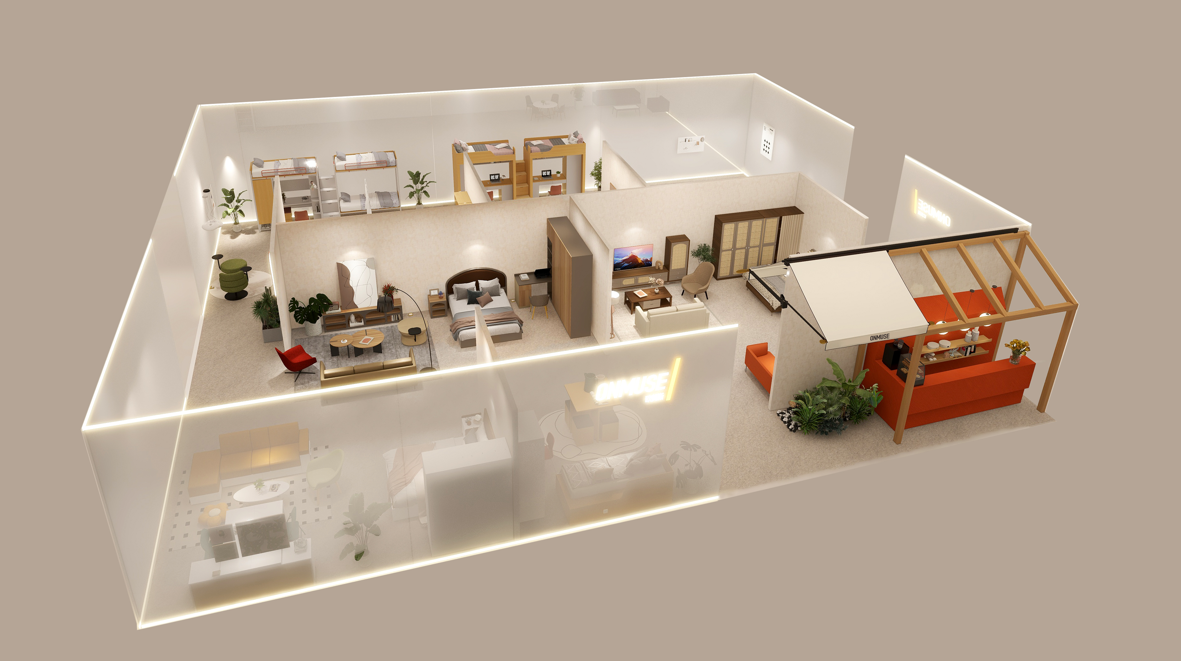 本次展会,我们以“寓”见欧美斯为主题,现场推出八大主题区域的公寓配套产品,以产品配套形式展现,让观展者身临其境体验空间方案配套带来的舒适体验感。