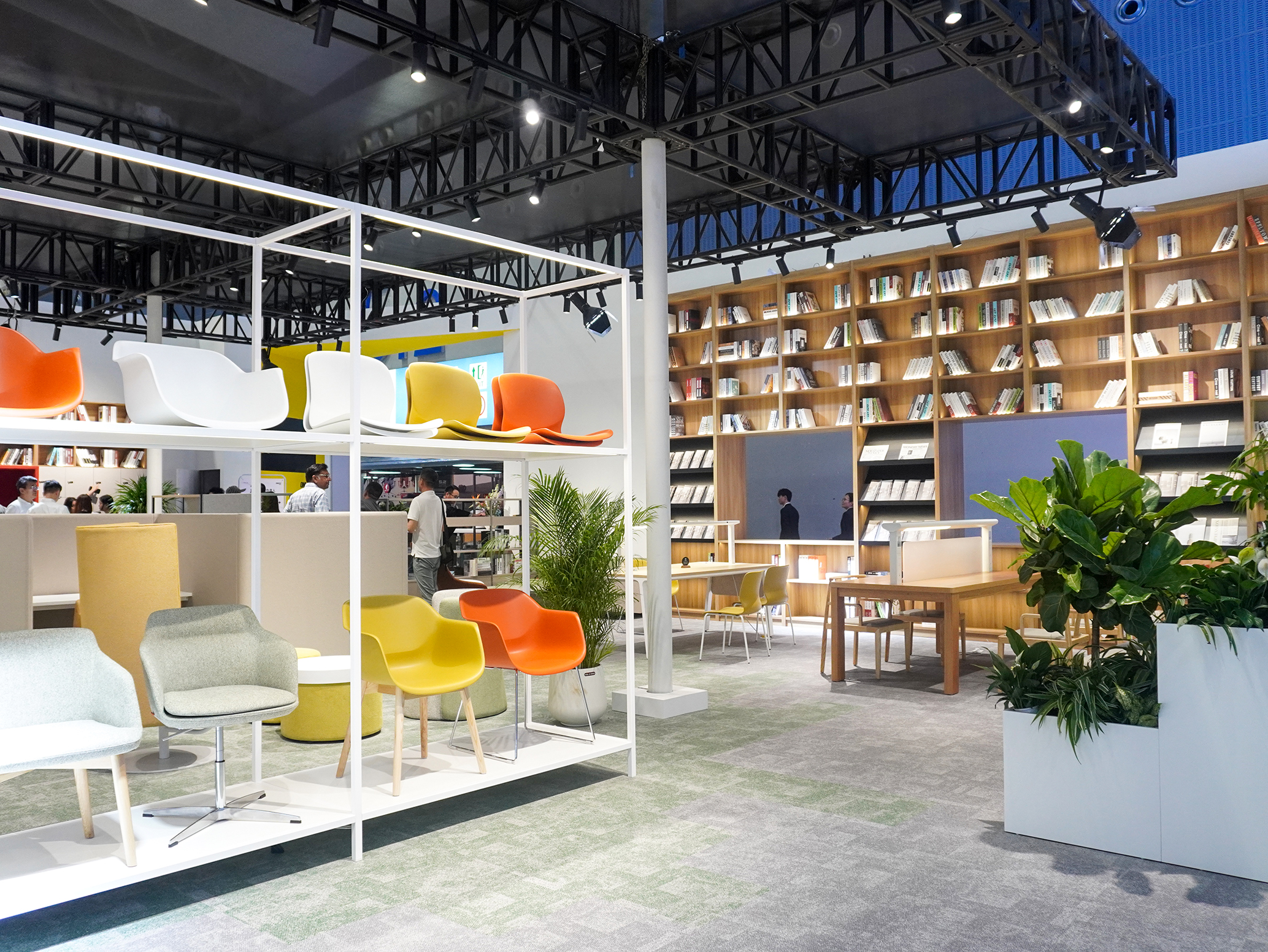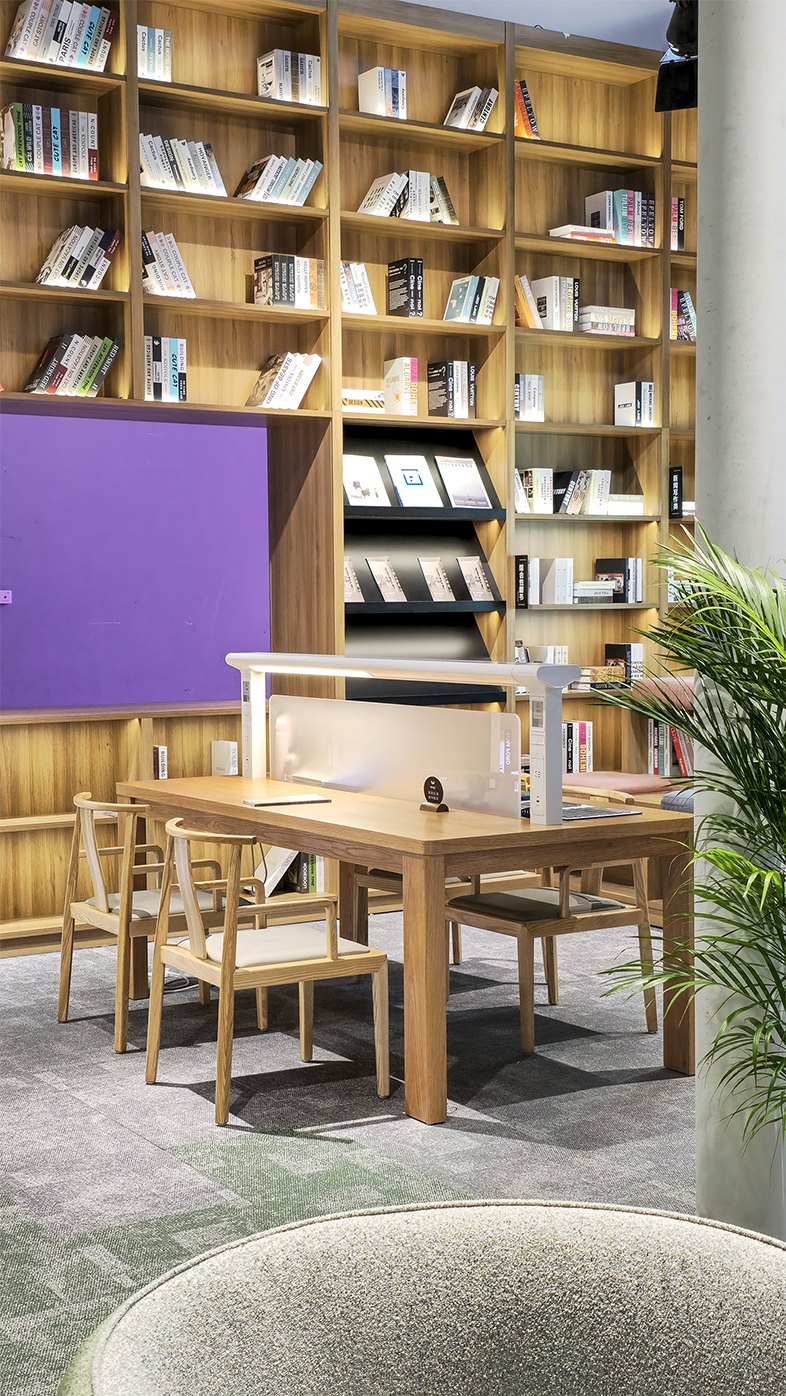 我们打破传统展位边界,以标准高层书架为展位外墙,不仅使展馆外形充满阅读氛围,更让“图书馆家具”这一新赛道的信号直观可见