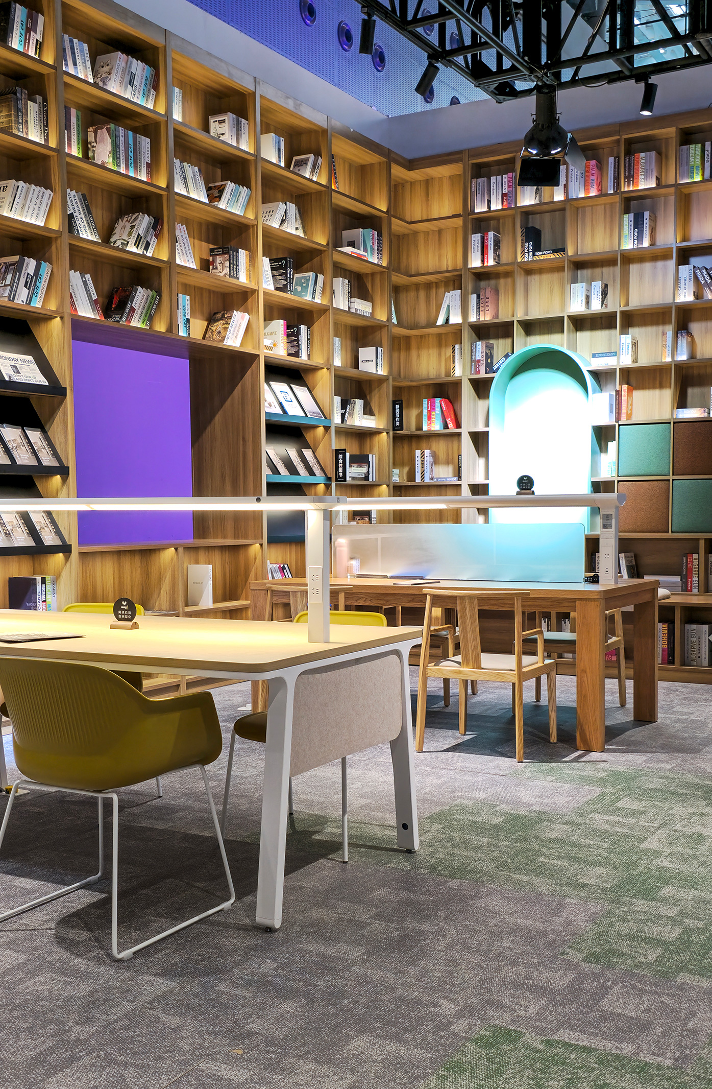 当你步入展场内,宛如走进一座现代图书馆,整个空间以图书馆为蓝本,分区明确、动线流畅、氛围沉浸,每一处细节皆精心布局,完美呈现新时代图书馆的多元空间形态。