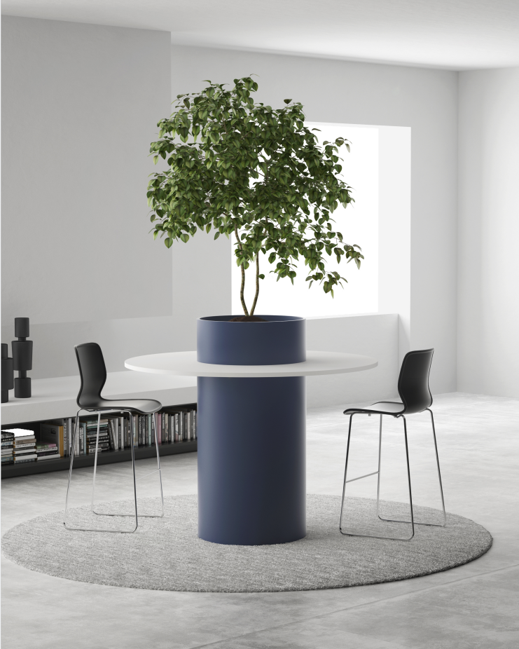 圆弧基座、连续桌型、灯光与绿植等复合表达,不只是为了美观,更是在帮助空间形成清晰的识别点,让使用者一眼理解:这里可以停留、可以交流、可以开始协作。GROVE 林聚并非单一桌型,而是围绕公共交流空间、休闲协作区与轻会议空间展开的桌类系统;其表达重点包括圆弧结构、吧台。