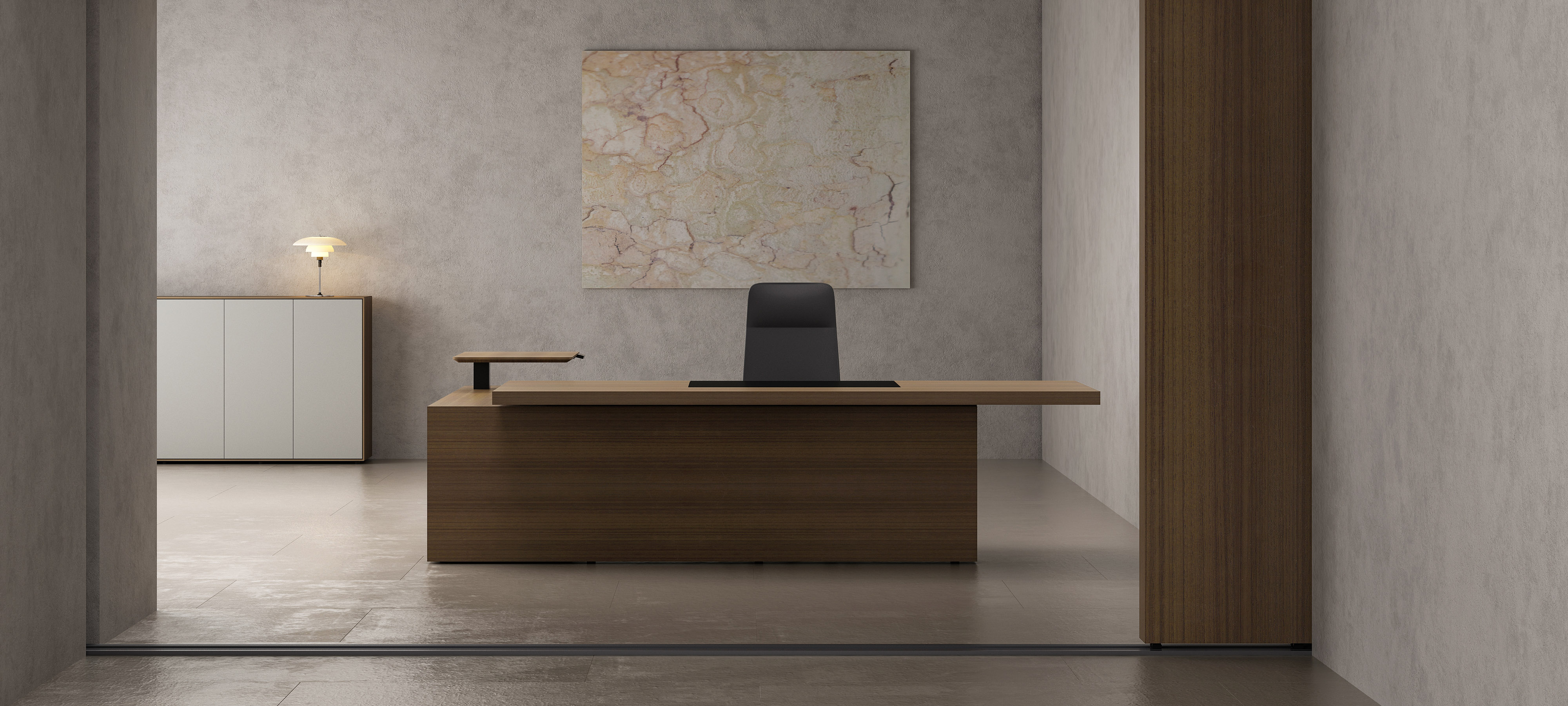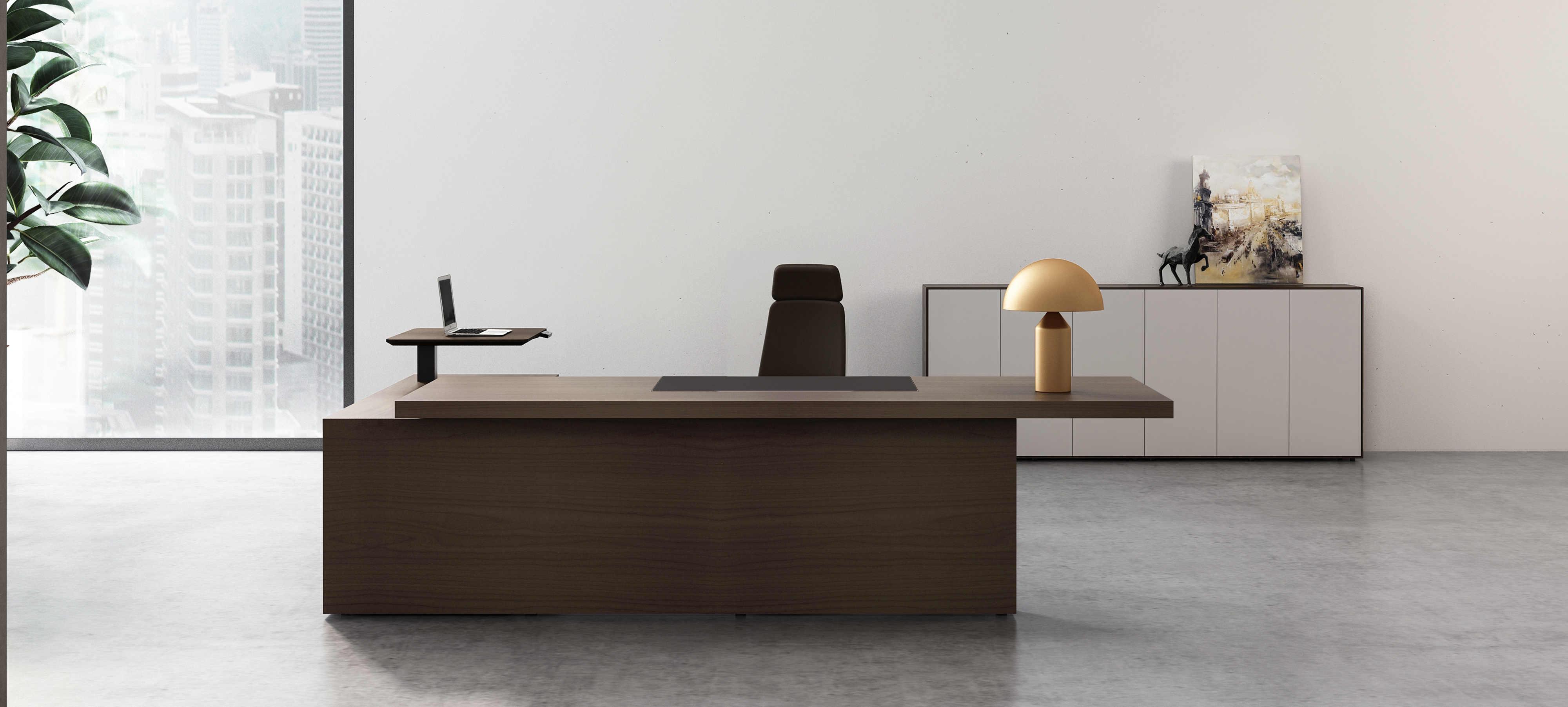 “DECISIF”在法语中是果决坚毅。沉稳的胡桃木,搭配稳重大气的外观设计,创造果敢、坚决,有胆有识,在经过慎重考虑、谨慎琢磨之后果断、坚定之举。创新设计带来独立,美观的视觉。德斯弗,一个具有吸引人眼球的产品。首先,桌边的线条干净利落,赋予外观简洁优雅。其次,纯实木的桌脚,带来了外观上的果敢、坚定;优质的升降系统给予产品不一样的功能,这种功能为产品的使用者提供了清晰的需求。简约主义为原则,形式的清晰和宁静。精湛的工艺表现在贴面纹理上,无缝地包裹在桌面边缘。